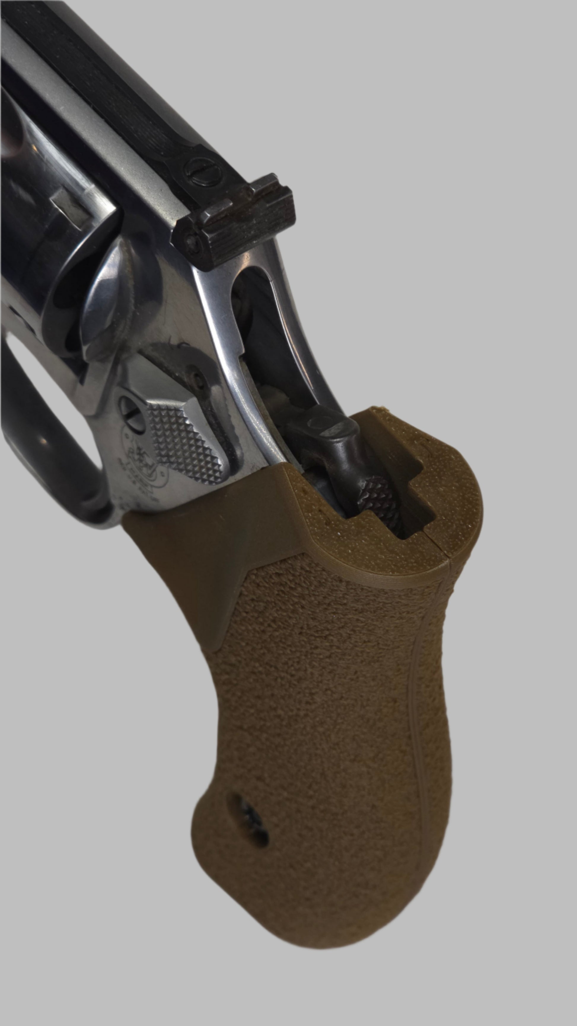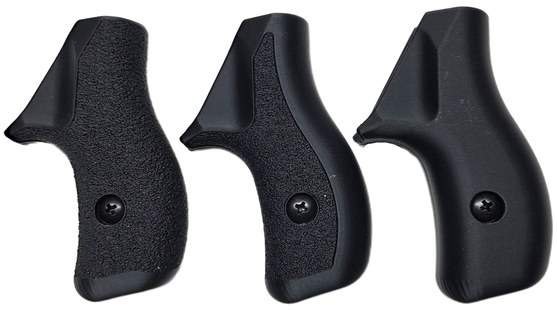 RevolGrips "Classic Contour" (C² for short) are a modern take on the original grips these weapons were designed with. Most grips on the market today try to fill in the sinus between the front strap of the grip and rear of the trigger guard. This methodology produces a trigger pull that is more like a semi-auto pistol being strait to the back, parallel to the bore axis. However, you loose space on the grip which often results in less than a four finger, full grip (or an extended grip that reduces concealability). With the "meat" of the grip in the front strap area, most manufacturers leave the back strap exposed to batter the web of your palm under recoil. Perhaps the worst drawback is the higher bore axis relative to the bone structures of your arm resulting in more muzzle flip, perceived recoil, and slower follow up shots.