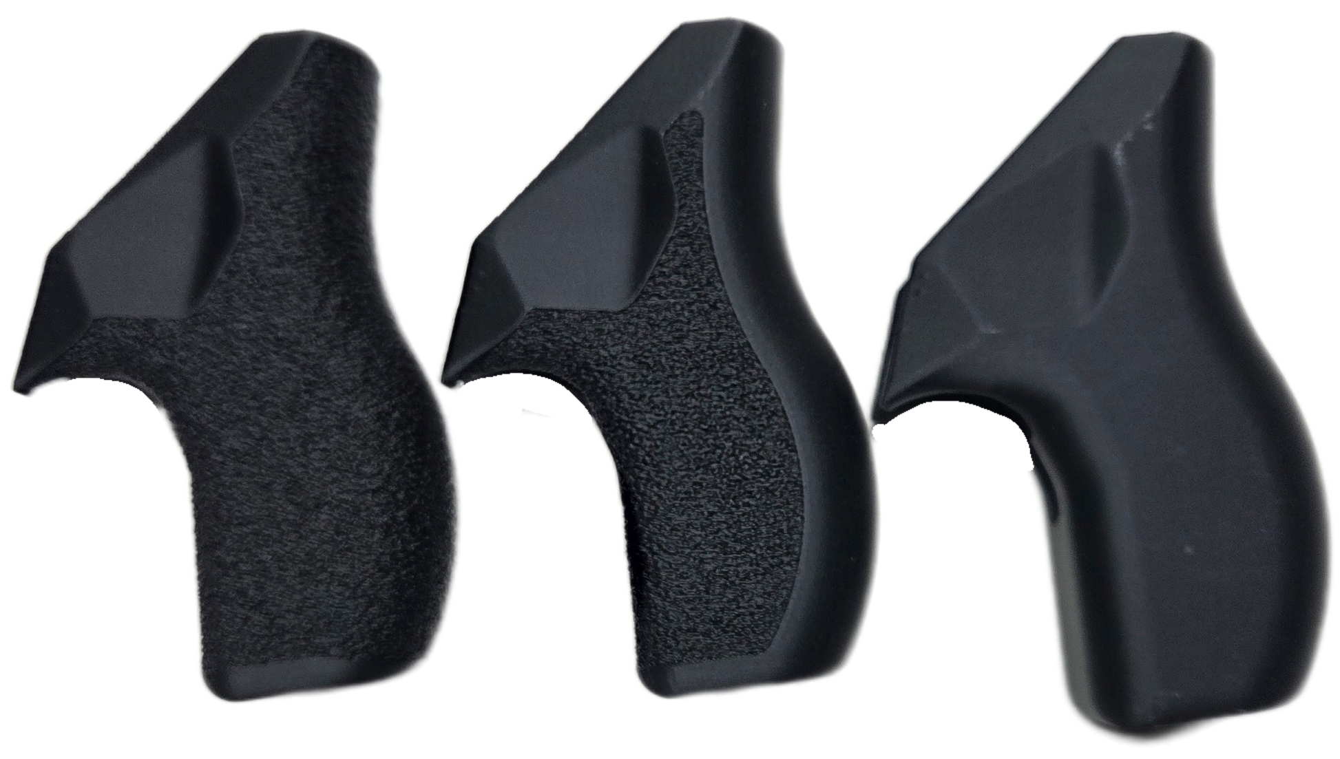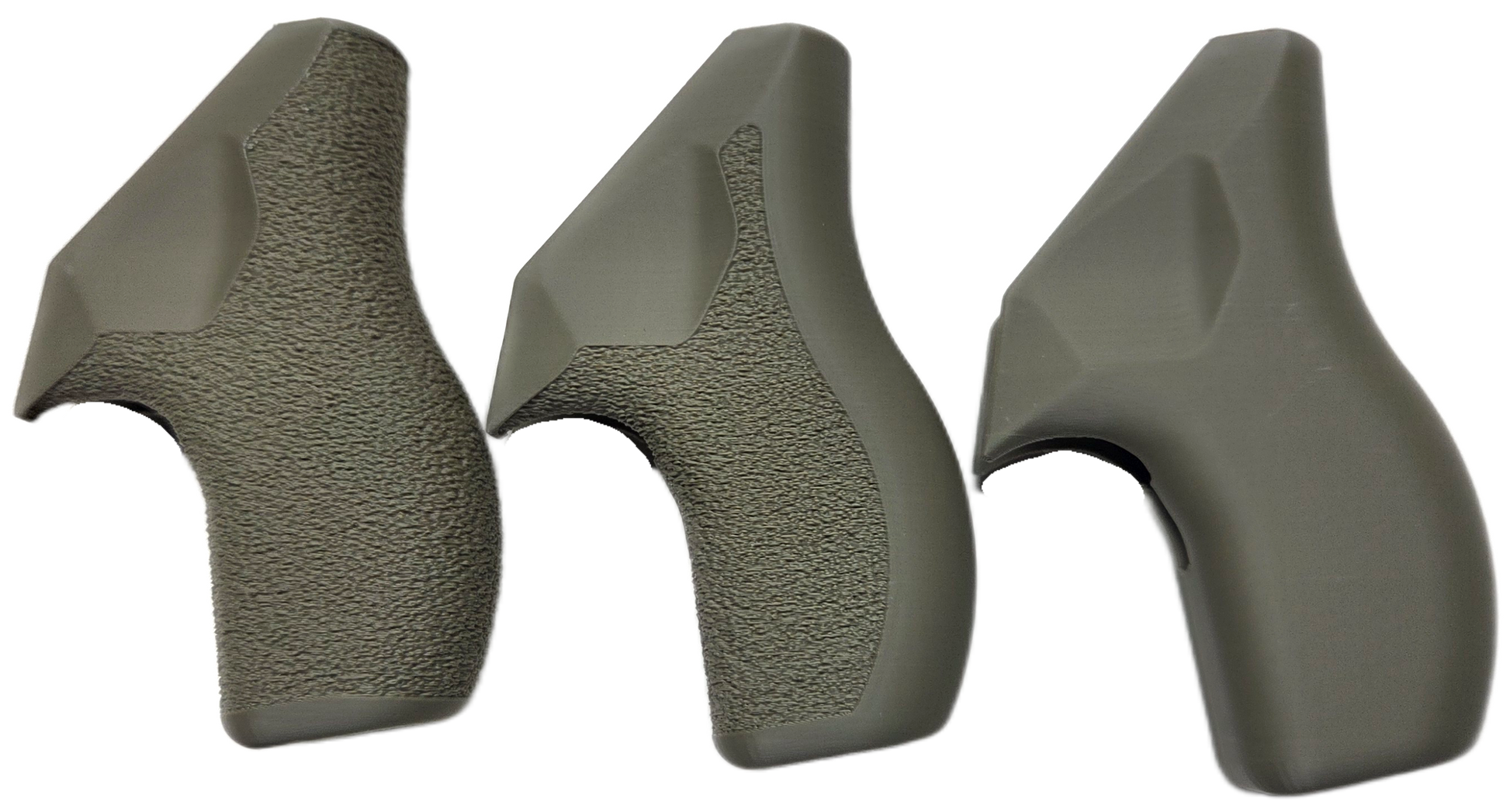 C² Polymer grips are 3D printed from durable PLA+ and have been extensively tested for several years. We offer a variety of attractive colors and three textures. Because of the printing process, the "Smooth" grips have layer lines that give a bit of purchase, but will not irritate skin or catch on clothing. The "Front Strap Stipple" texture give you a 60 grit sandpaper type texture where it counts on the front strap, but is still smooth on the back strap for carry comfort. The "Full Stipple" wraps that texture around the whole grip for maximum control.