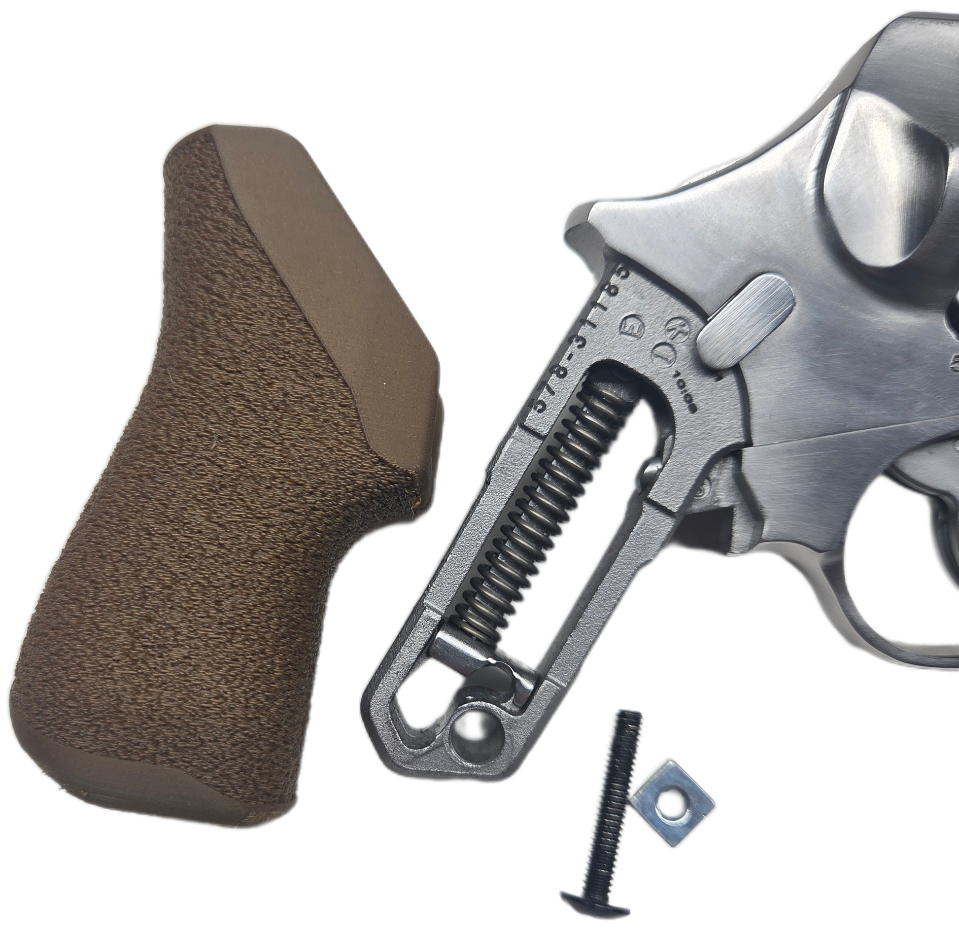 RevolGrips "Classic Contour" (C² for short) are a modern take on the original grips these weapons were designed with. Most grips on the market today try to fill in the sinus between the front strap of the grip and rear of the trigger guard. This methodology produces a trigger pull that is more like a semi-auto pistol being strait to the back, parallel to the bore axis. However, you loose space on the grip which often results in less than a four finger, full grip (or an extended grip that reduces concealability). With the "meat" of the grip in the front strap area, most manufacturers leave the back strap exposed to batter the web of your palm under recoil. Perhaps the worst drawback is the higher bore axis relative to the bone structures of your arm resulting in more muzzle flip, perceived recoil, and slower follow up shots.