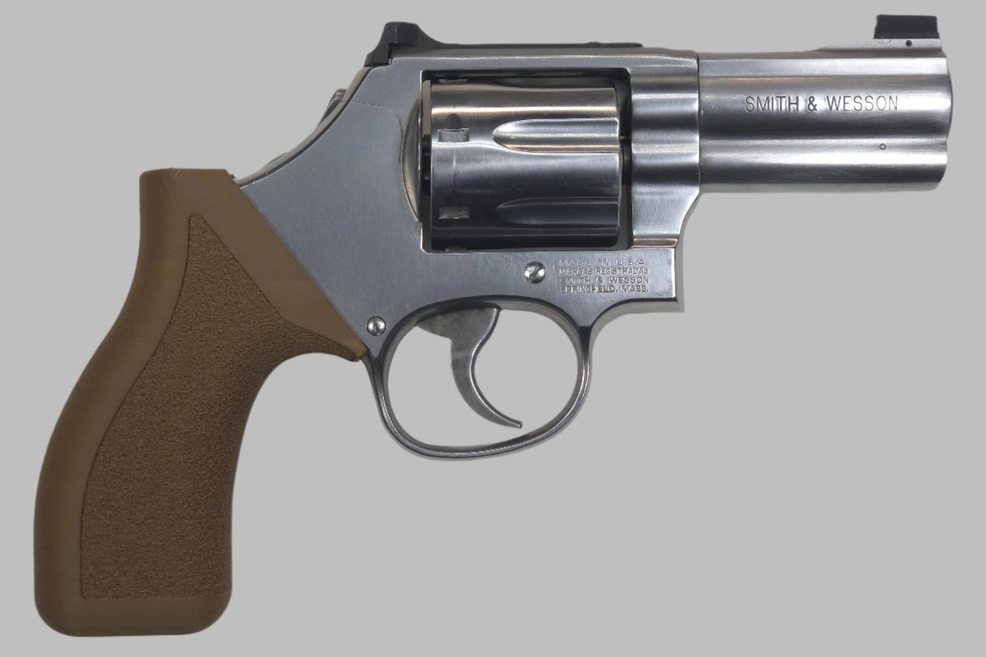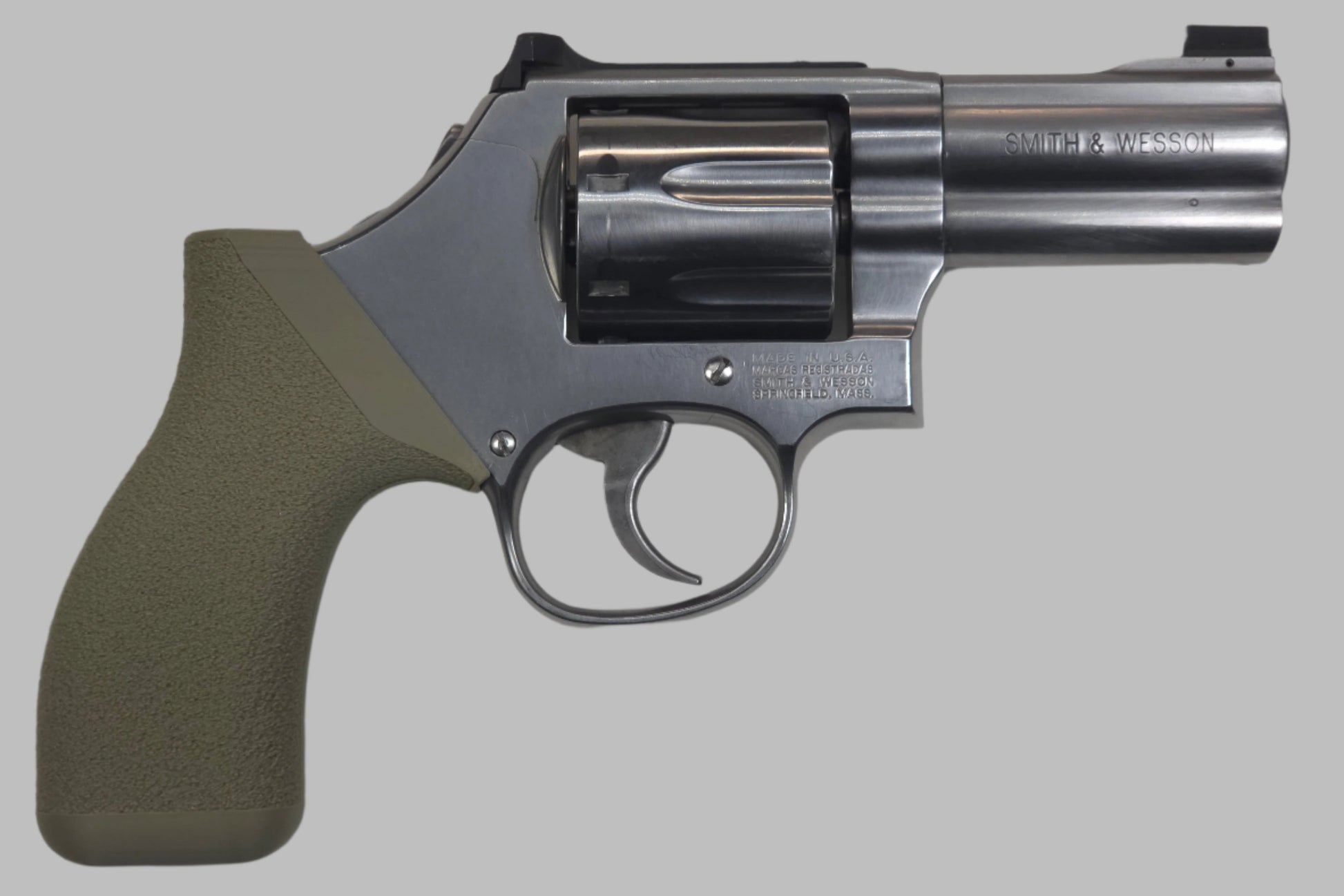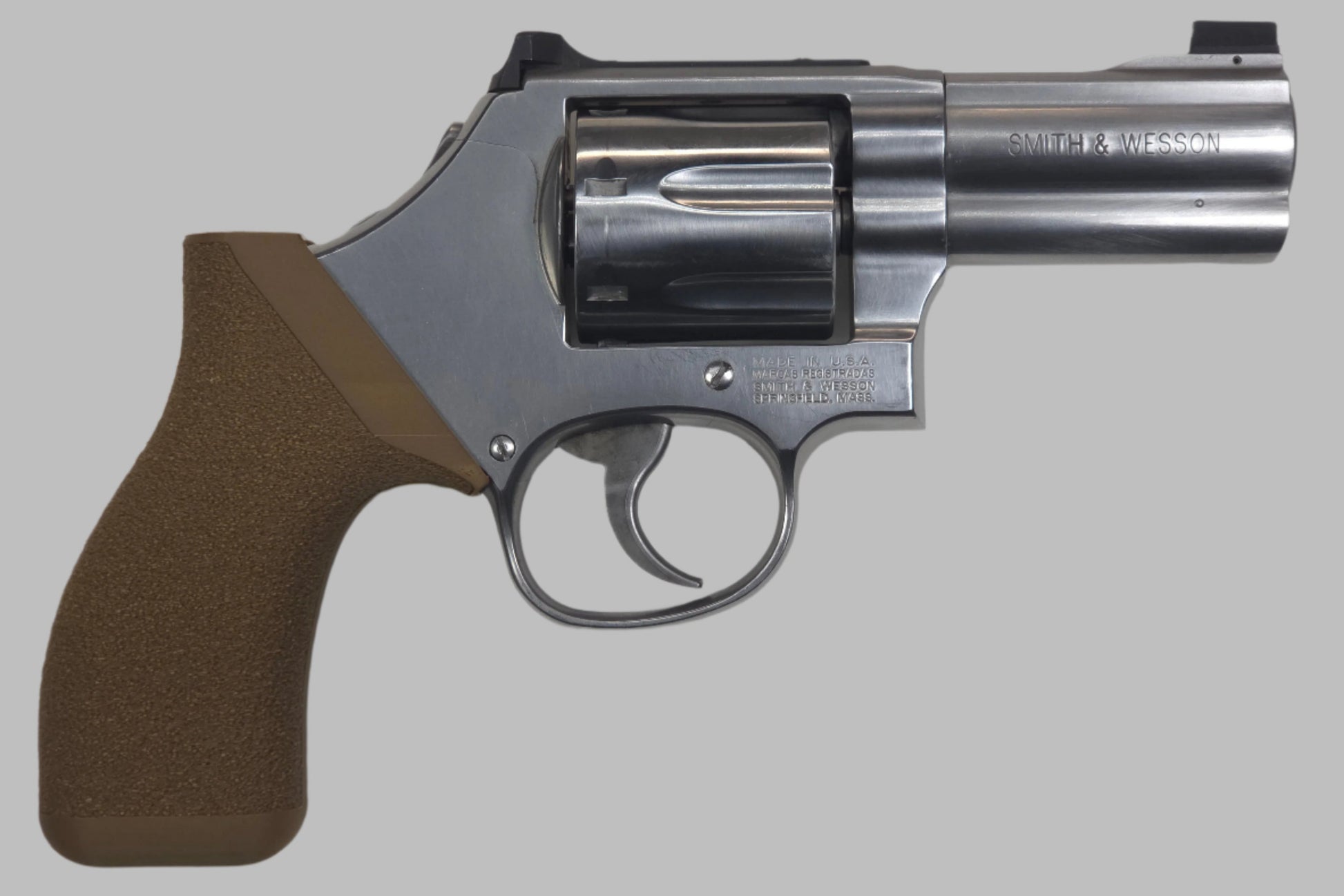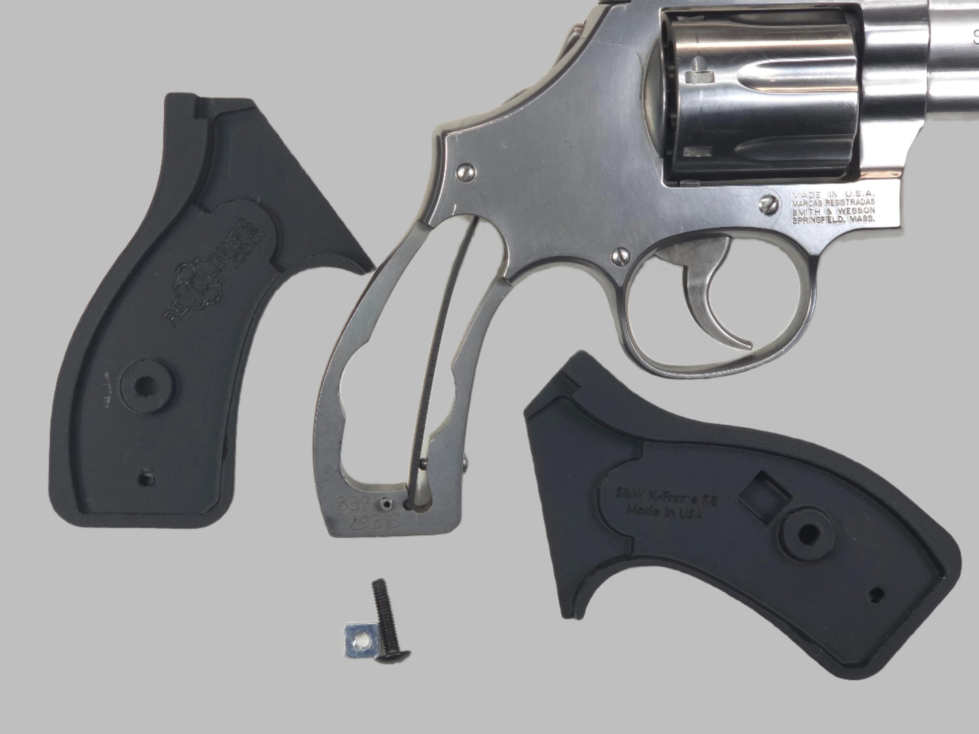 RevolGrips "Classic Contour" (C² for short) are a modern take on the original grips these weapons were designed with. Most grips on the market today try to fill in the sinus between the front strap of the grip and rear of the trigger guard. This methodology produces a trigger pull that is more like a semi-auto pistol being strait to the back, parallel to the bore axis. However, you loose space on the grip which often results in less than a four finger, full grip (or an extended grip that reduces concealability). With the "meat" of the grip in the front strap area, most manufacturers leave the back strap exposed to batter the web of your palm under recoil. Perhaps the worst drawback is the higher bore axis relative to the bone structures of your arm resulting in more muzzle flip, perceived recoil, and slower follow up shots.