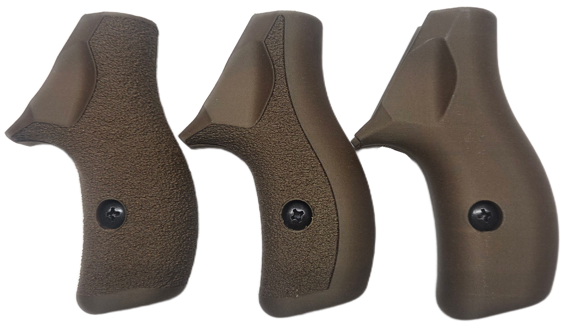 C² Polymer grips are 3D printed from durable PLA+ and have been extensively tested for several years. We offer a variety of attractive colors and three textures. Because of the printing process, the "Smooth" grips have layer lines that give a bit of purchase, but will not irritate skin or catch on clothing. The "Front Strap Stipple" texture give you a 60 grit sandpaper type texture where it counts on the front strap, but is still smooth on the back strap for carry comfort. The "Full Stipple" wraps that texture around the whole grip for maximum control.