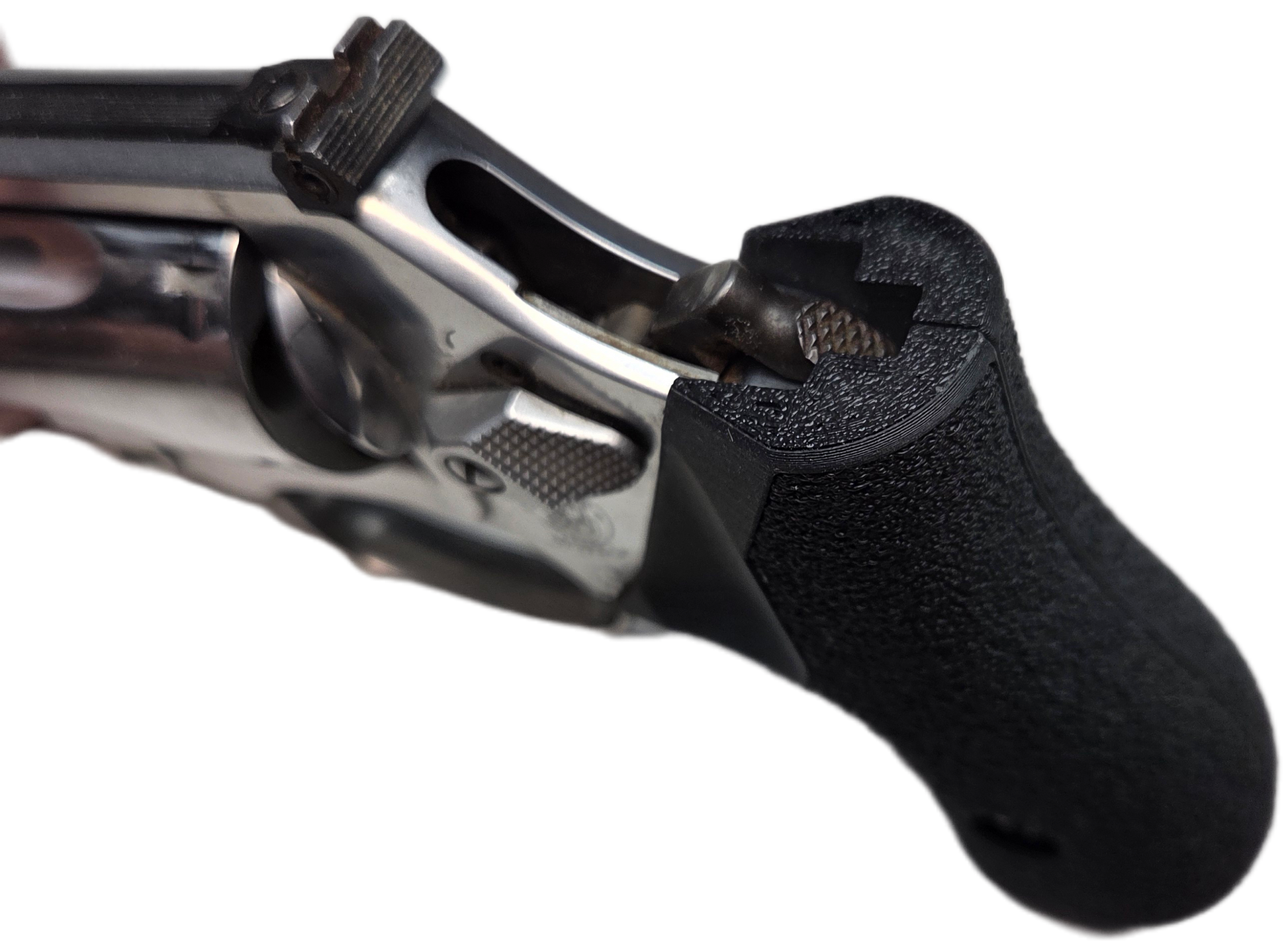 RevolGrips "Classic Contour" (C² for short) are a modern take on the original grips these weapons were designed with. Most grips on the market today try to fill in the sinus between the front strap of the grip and rear of the trigger guard. This methodology produces a trigger pull that is more like a semi-auto pistol being strait to the back, parallel to the bore axis. However, you loose space on the grip which often results in less than a full grip (or an extended grip that reduces concealability). With the "meat" of the grip in the front strap area, most manufacturers leave the back strap exposed to batter the web of your palm under recoil. Perhaps the worst drawback is the higher bore axis relative to the bone structures of your arm resulting in more muzzle flip, perceived recoil, and slower follow up shots.