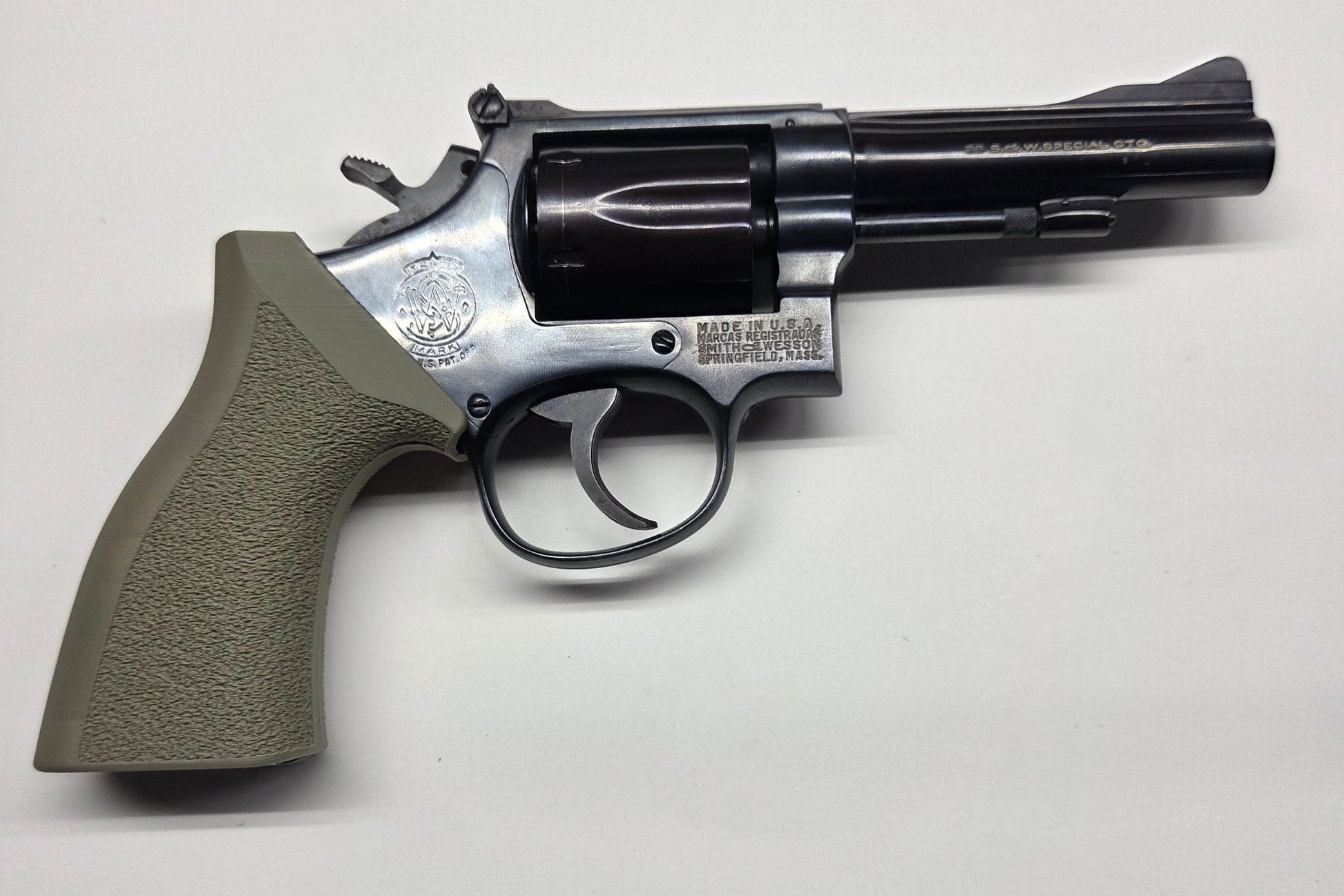 RevolGrips "Classic Contour" (C² for short) are a modern take on the original grips these weapons were designed with. Most grips on the market today try to fill in the sinus between the front strap of the grip and rear of the trigger guard. This methodology produces a trigger pull that is more like a semi-auto pistol being strait to the back, parallel to the bore axis. However, you loose space on the grip which often results in less than a four finger, full grip (or an extended grip that reduces concealability). With the "meat" of the grip in the front strap area, most manufacturers leave the back strap exposed to batter the web of your palm under recoil. Perhaps the worst drawback is the higher bore axis relative to the bone structures of your arm resulting in more muzzle flip, perceived recoil, and slower follow up shots.
